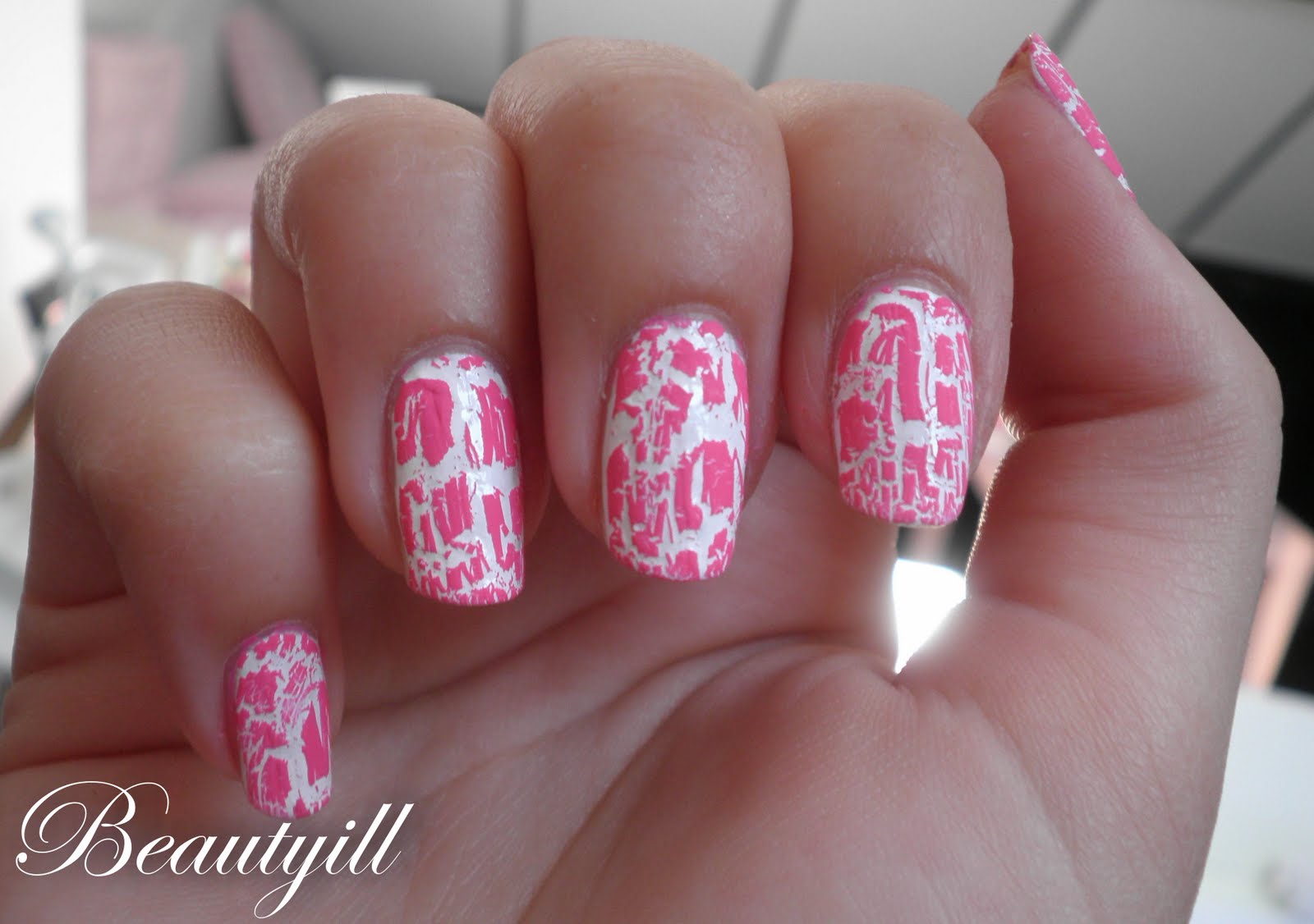 Theres even a sweet heart done in pink and white on one nail and roses on others.