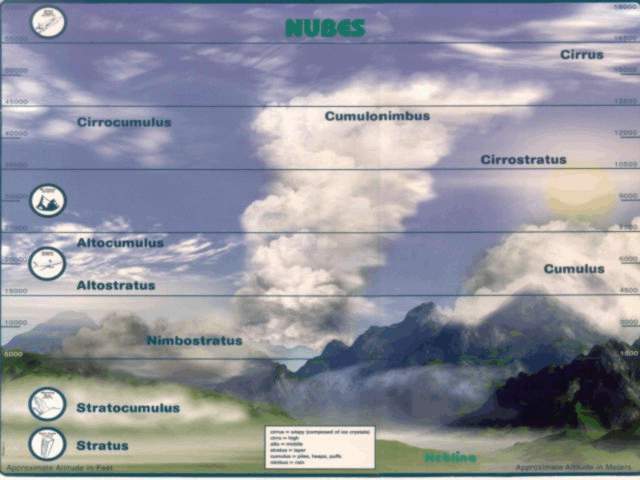 El tiempo es un libro de la coleccion abre los ojos de la editorial pearson alhambra. Las nubes se pueden clasificar por nubes de formacion baja media alta. Cuando buscamos las conocidas nubes para colorear nos damos cuenta que estas son formadas por la concentracion y enfriamiento de masas de aire. Para saber cuales son los tipos de nubes y sus caracteristicas debemos estar atentos a la forma altura color y formacion de las nubes para saber que tipo de nube es.